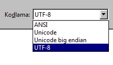 Bir de karakter kodlama seçeneğini UTF-8 seçelim.