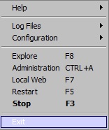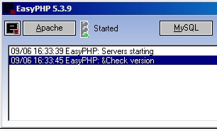 EasyPHP'yi kurduğumuzda yukarıdaki gibi bir ekran ile çalışmaya başlar. Bize Apache Web Server ve Mysql ile PHP otomatik kurulur ve çlaıştırılır. Saatin oraya gelen EasyPHP ikonuna sağ tıklayıp Phpmyadmin'in de olduğu yönetim ekranını açacağız. Aşağıdaki menü bendeki EasyPHP nin menüsüdür. Versiyonu 5.3.9'dur. Administration seçeneği ile PHPmyAdmin'nin de olduğu ana yönetim ekranı açılır.