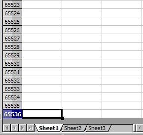 Yukarıdaki resimdeki Sheets1 DB'deki musteri tablosuna isabet eder. Tablonun (sheet1) maksimum kayıt tutma kapasitesi 65 bin 5 yüz 36 adettir. 2nin katı olan bu sayı birçok Tablo için yeterli olsa da sonuçta bir sınırlamadır. CTRL + Aşağı ok tuşu ile belge sonuna gidebilirsiniz.